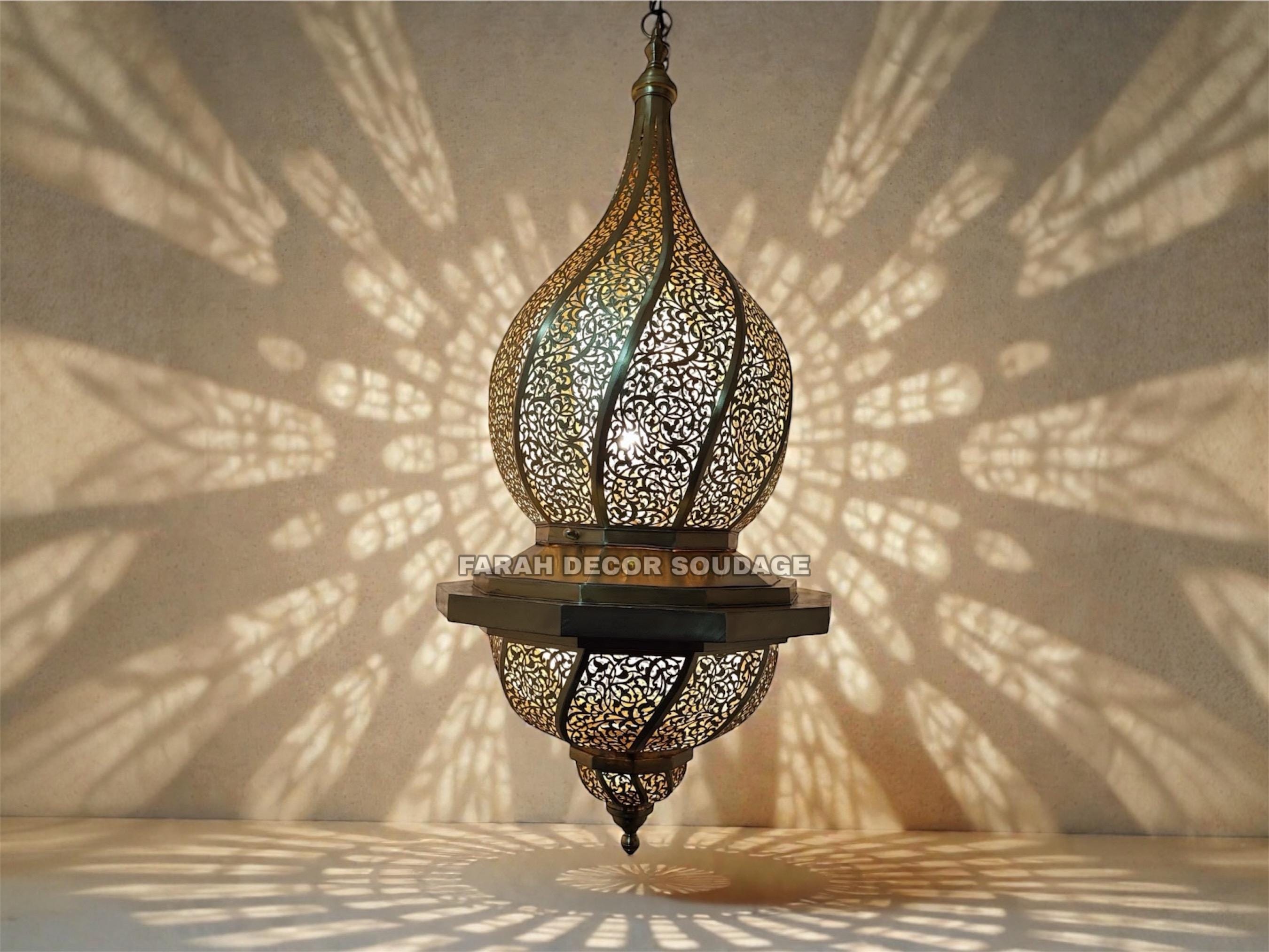 This elegant Moroccan lighting piece is perfect for living rooms, dining areas, bedrooms, or entryways and adds a unique touch of bohemian and oriental decor to any interior.