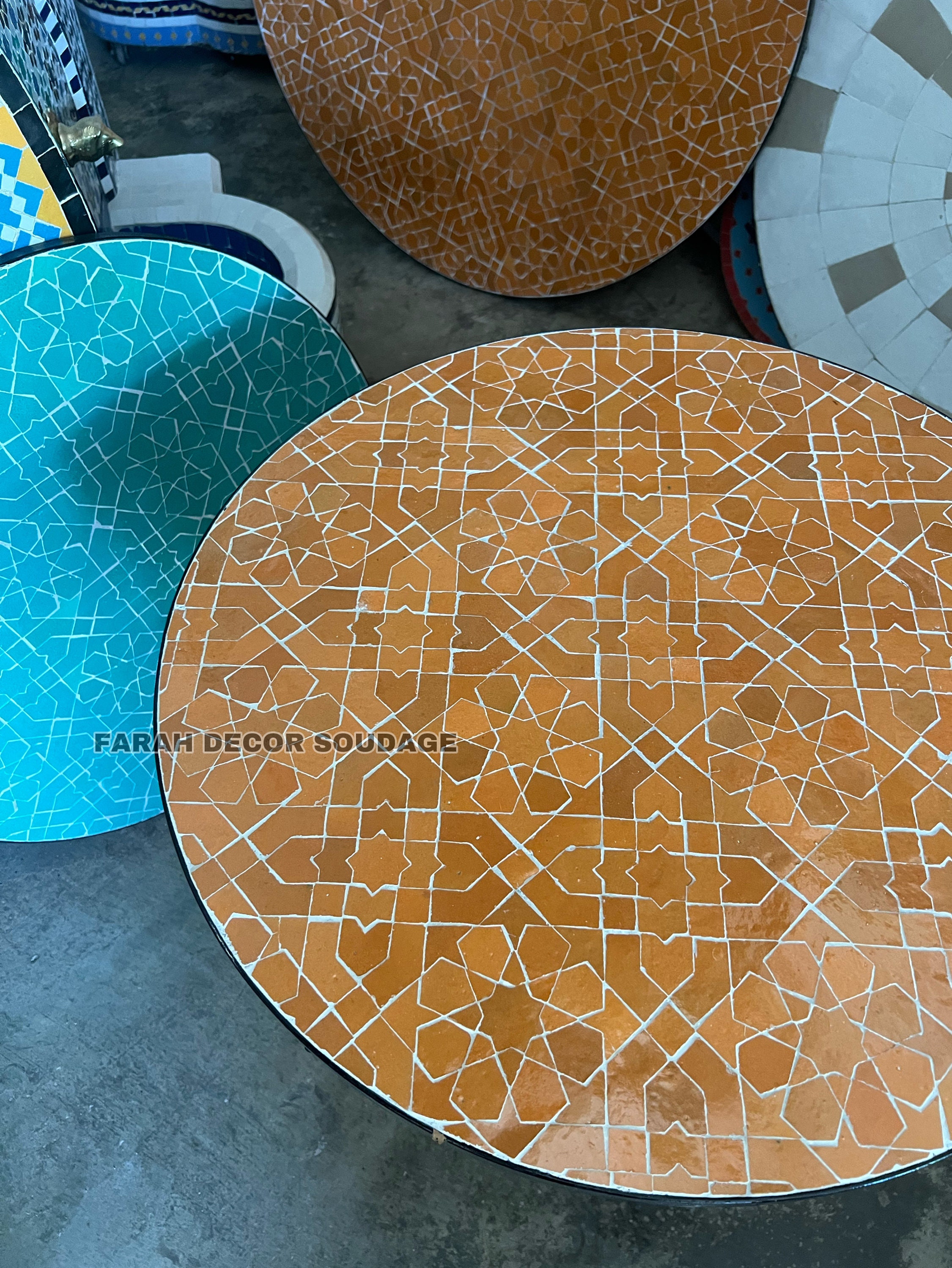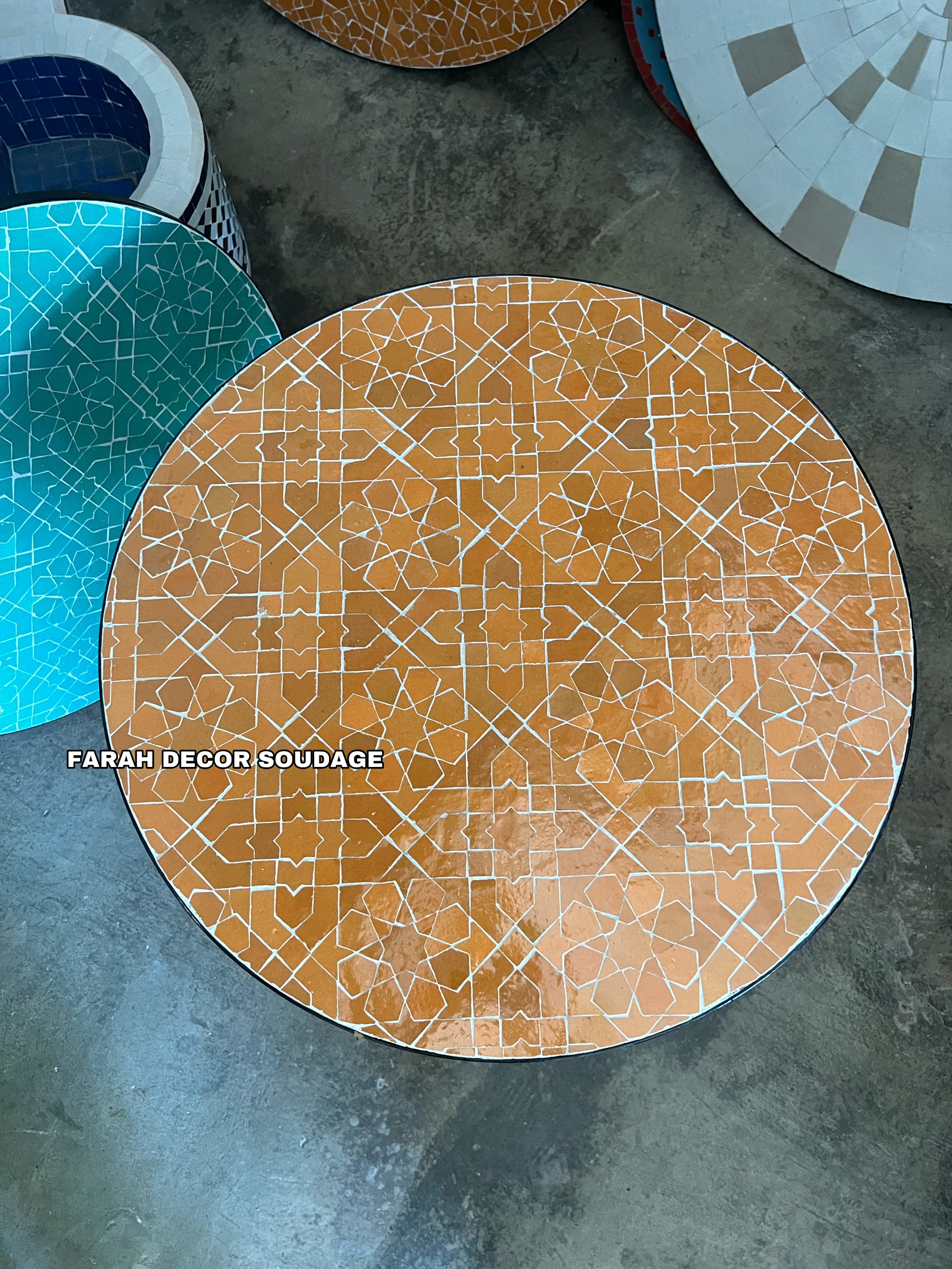 This round Moroccan Zellige mosaic table is handmade in our workshop using traditional tile-making techniques passed down through generations. Each Zellige tile is individually cut and carefully set by hand, resulting in a unique mosaic surface full of character and authenticity.