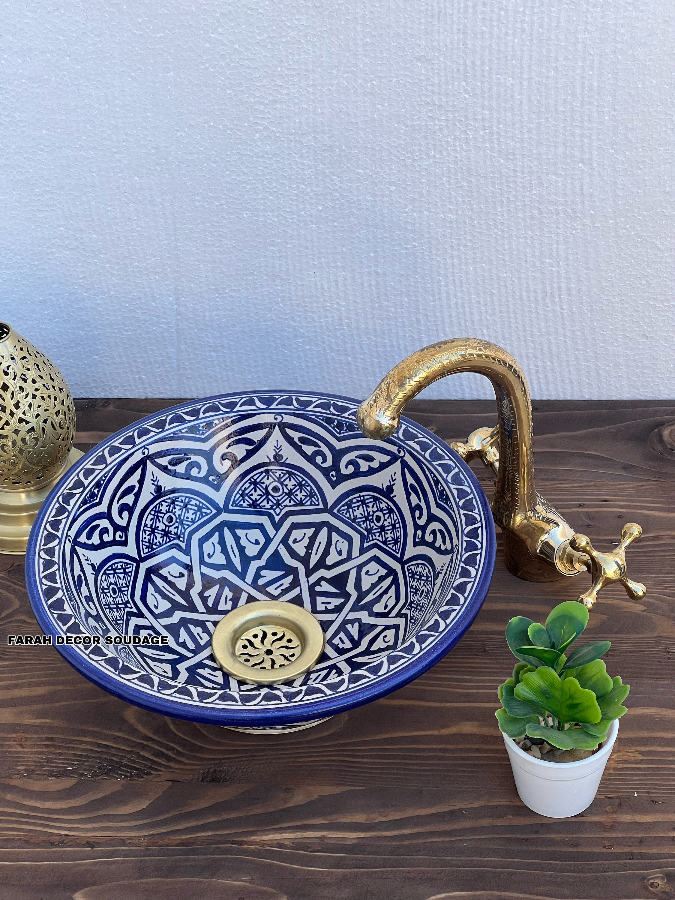 Bathroom Vessel Sink Handcrafted Moroccan Sink Washbasin Wash Basin Ceramic Handmade Hand Painted - Moroccan ceramic sink - FREE BRASS DRAIN
