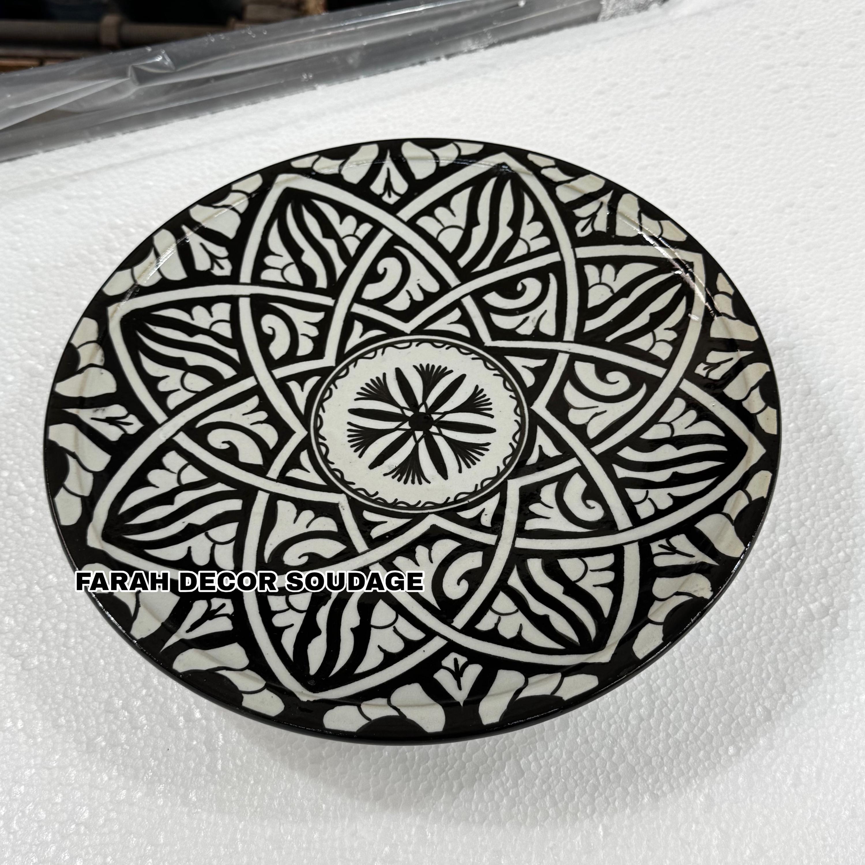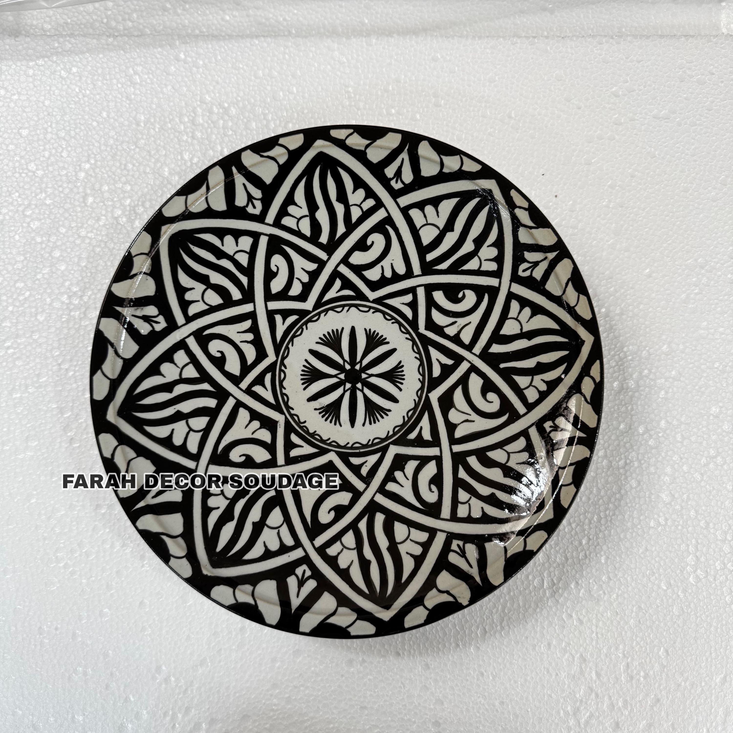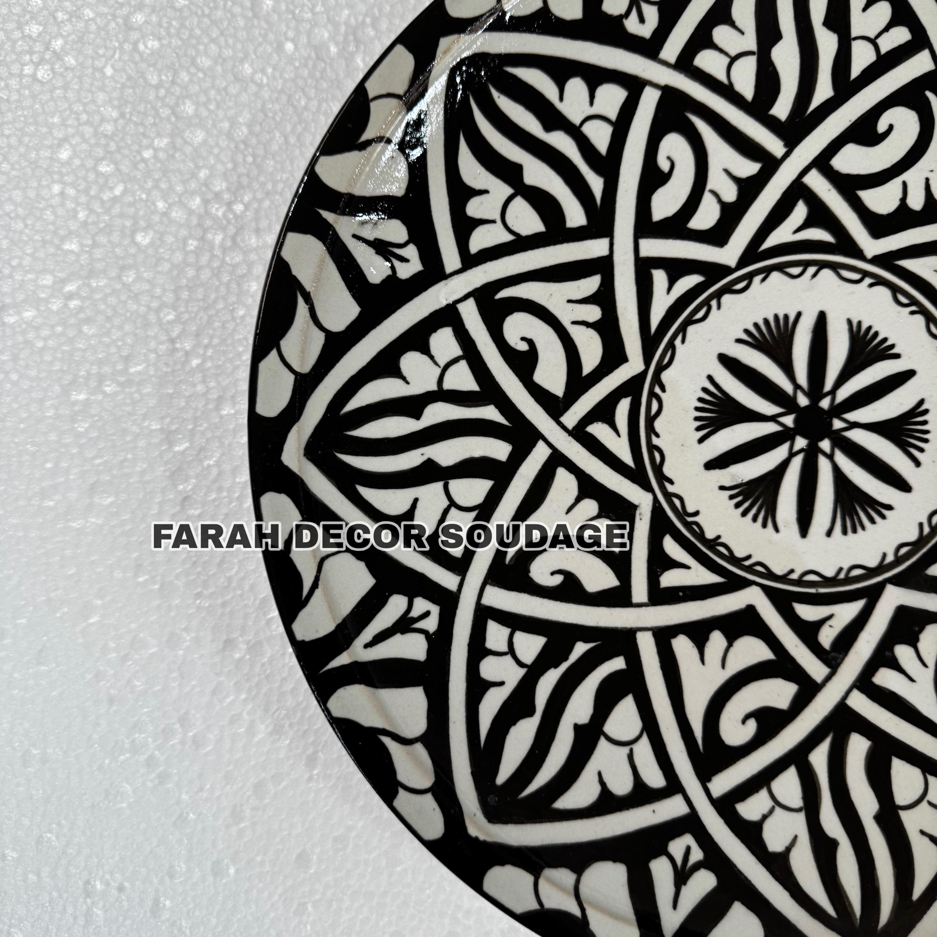 Experience the elegance of authentic Moroccan craftsmanship with this handmade ceramic plate. Each piece is carefully shaped and hand-painted by skilled artisans, featuring a traditional Zellige geometric pattern that reflects centuries of cultural heritage.