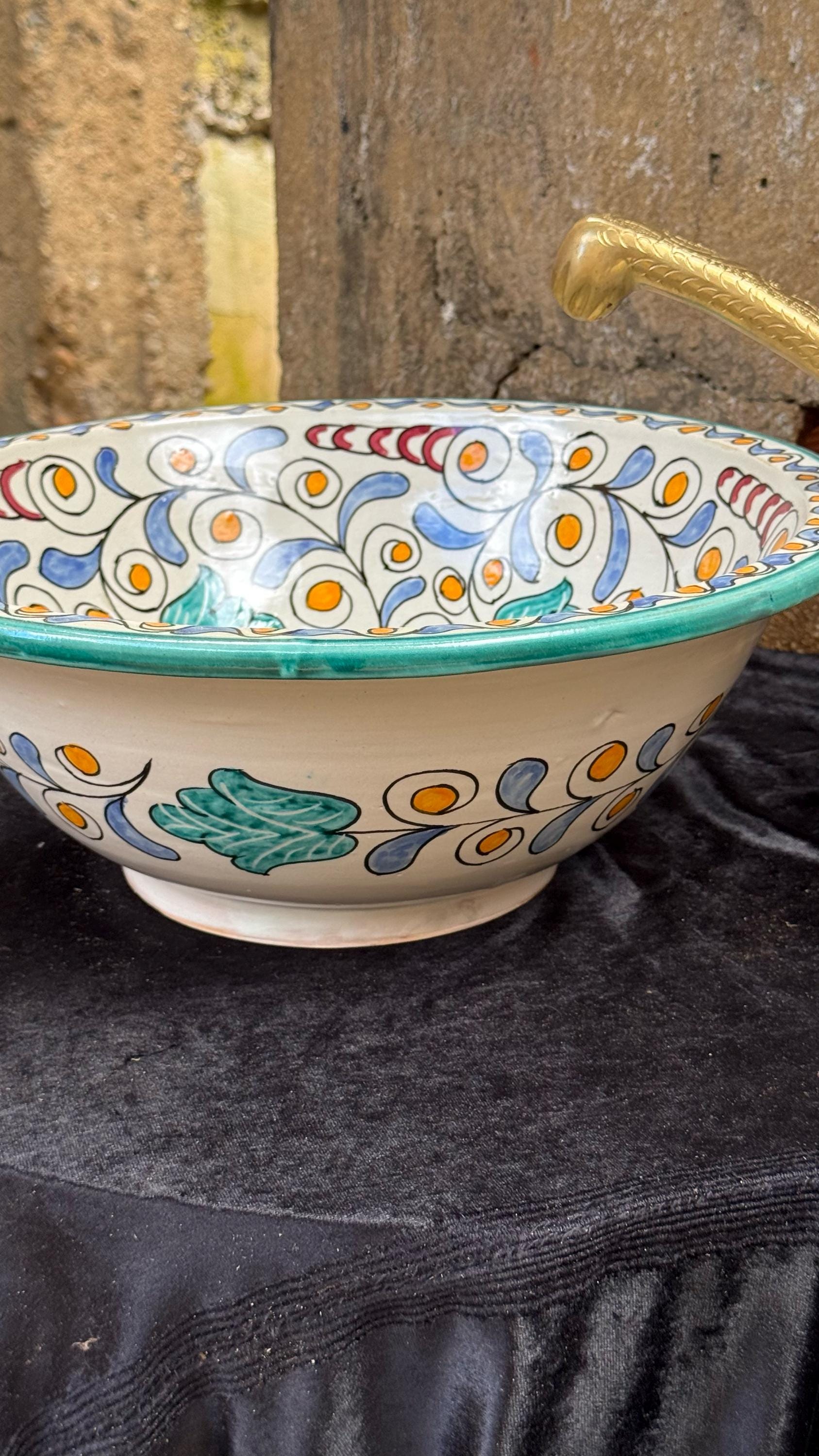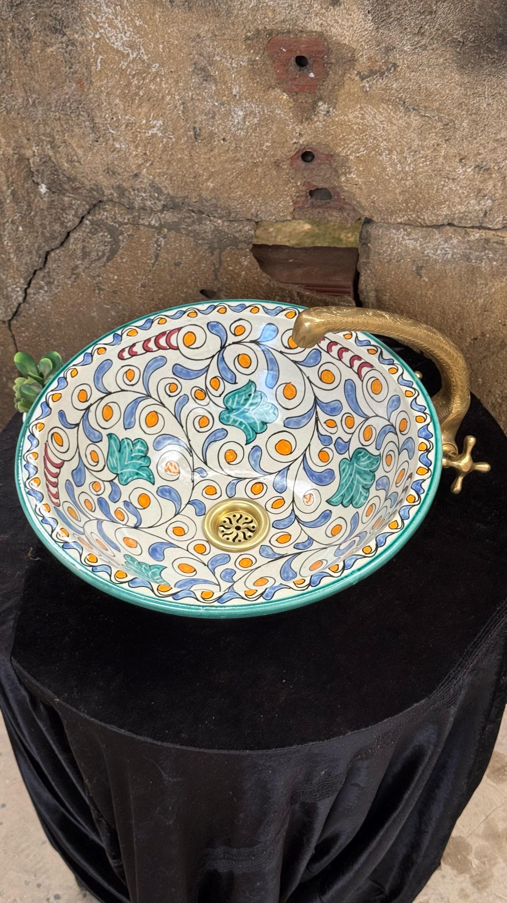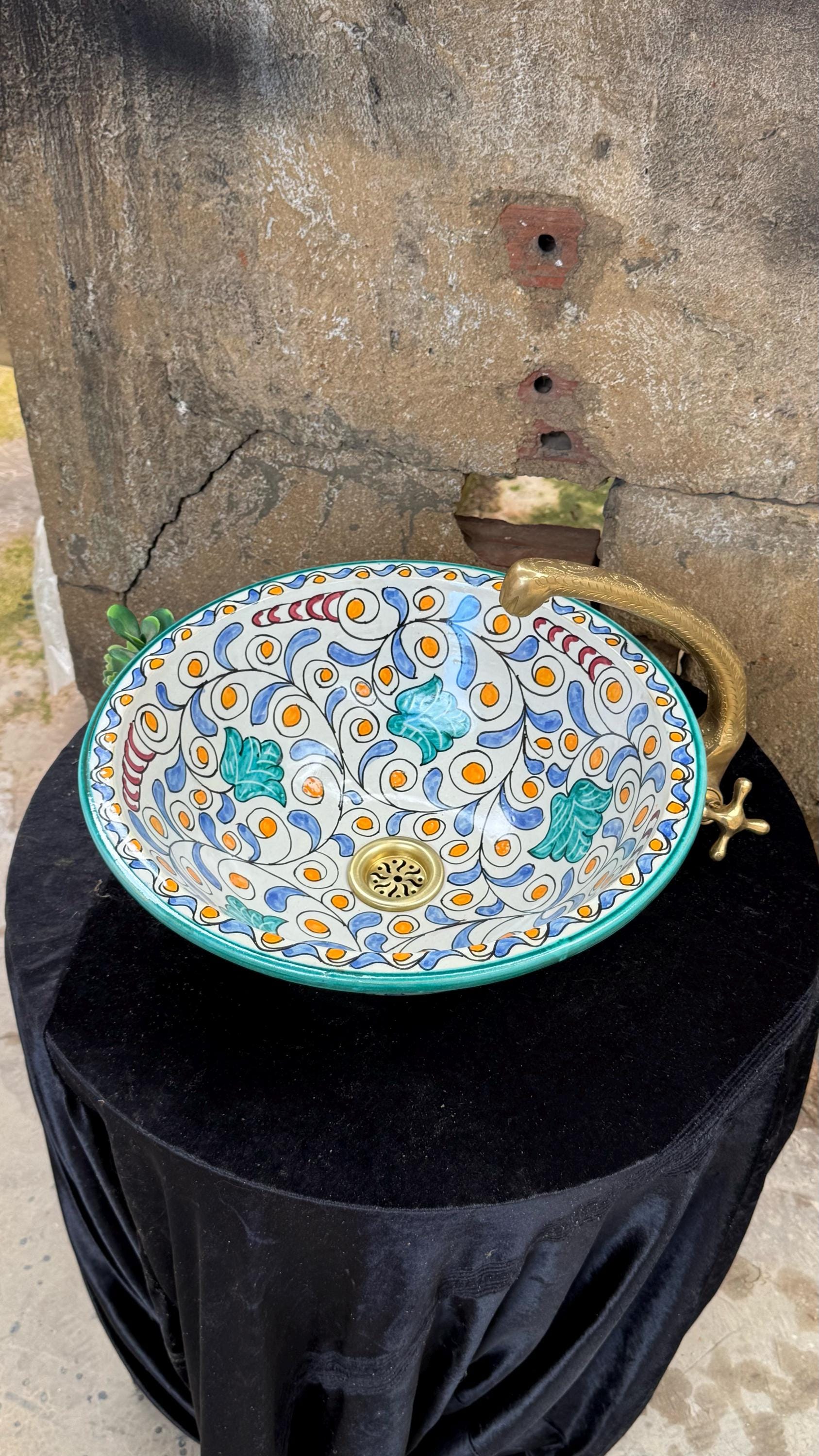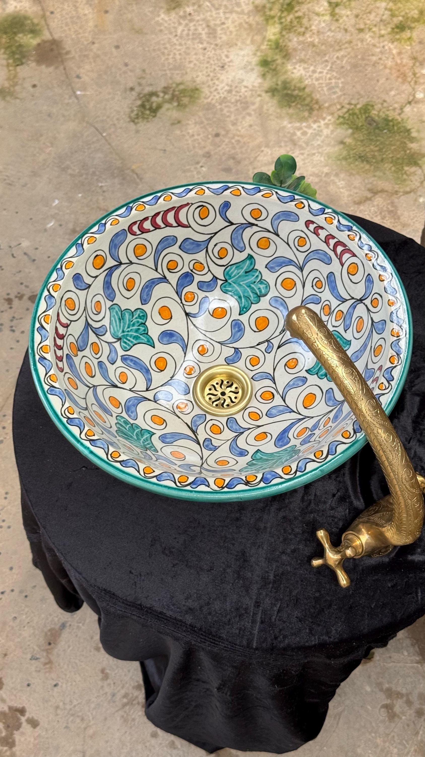Moroccan Bathroom Vessel Sink - Handmade Artisanal Ceramic Basin - Bathroom Vanity Centerpiece .