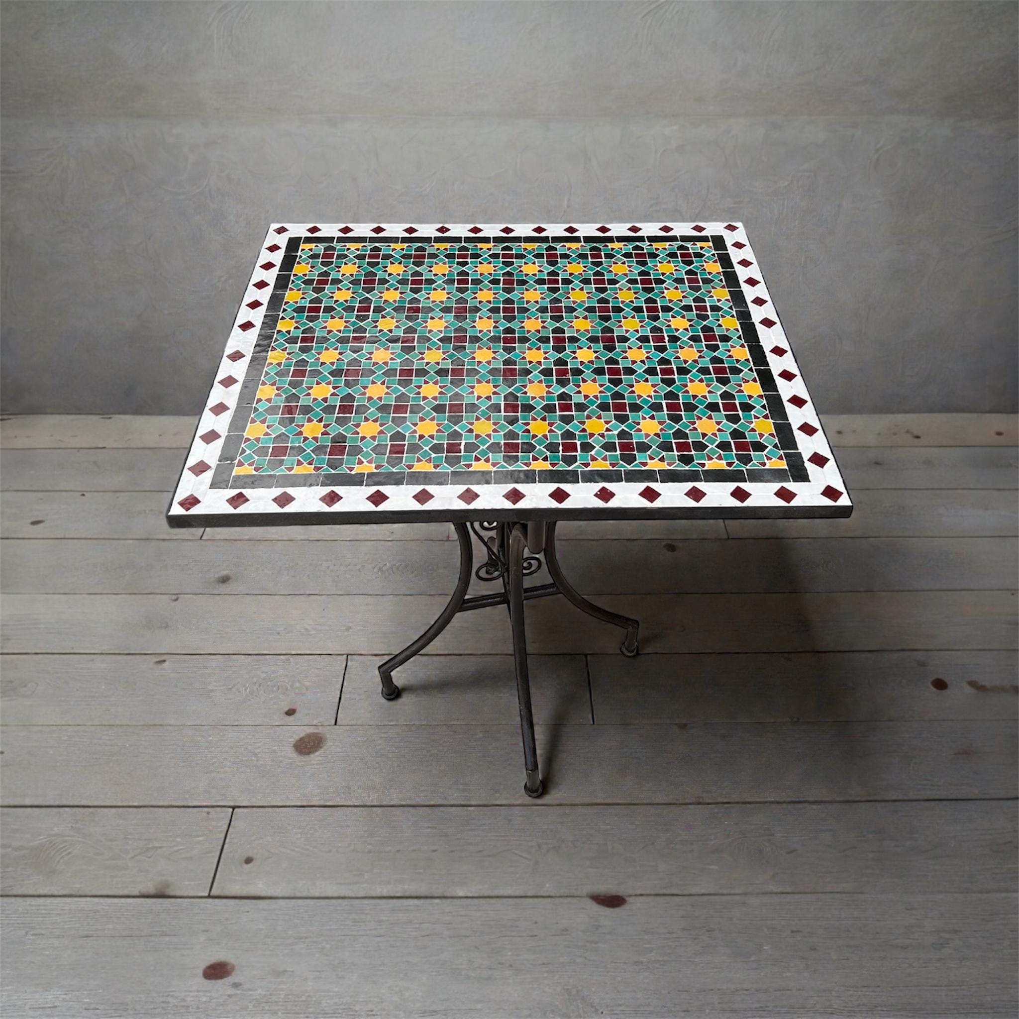 Handmade Moroccan Square Mosaic Table - Custom Zellige Tile Outdoor Bistro Table - Morrish Decor .