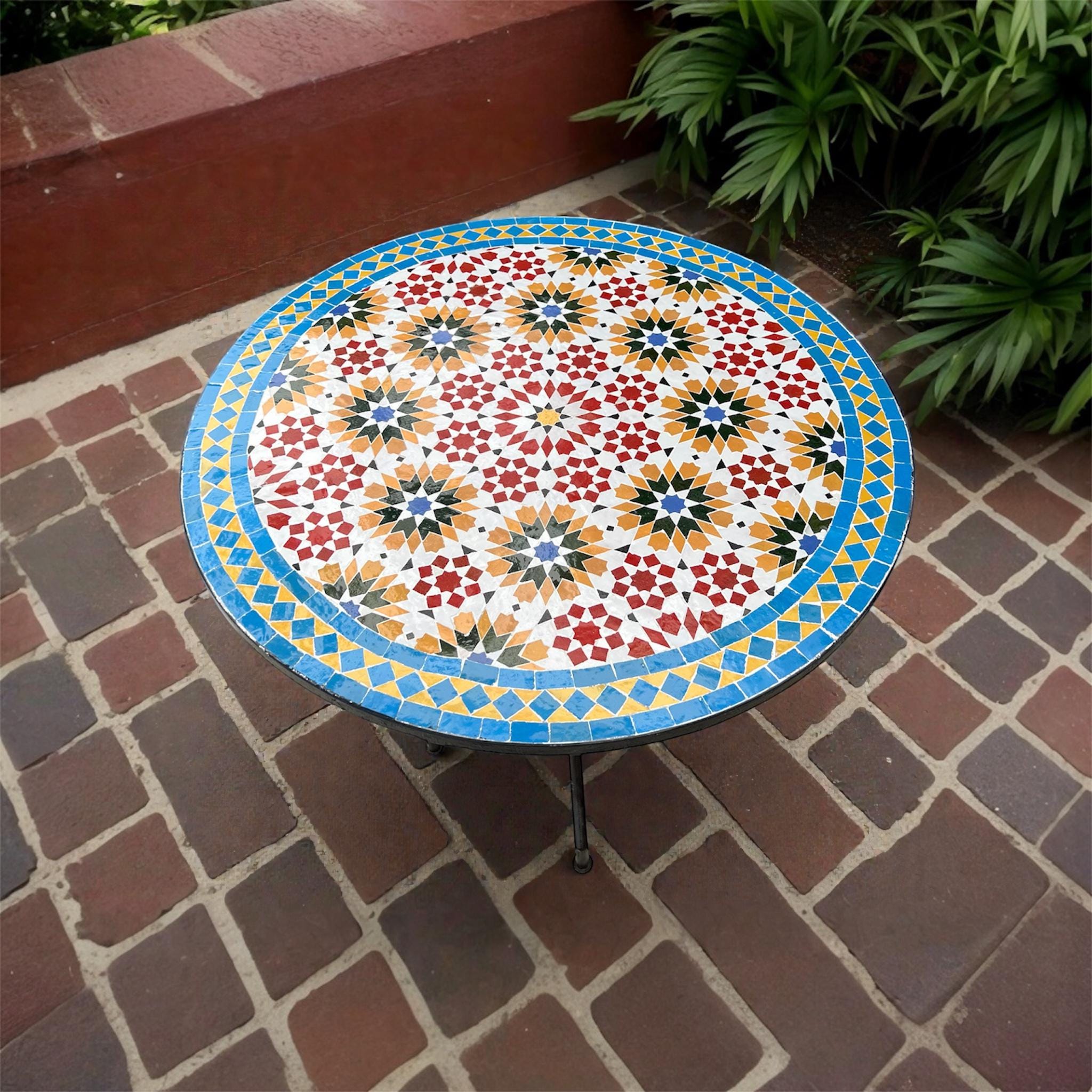 Handmade Moroccan Mosaic Bistro Table - Custom Round Tile Outdoor Dining Table - Morrish Decor .