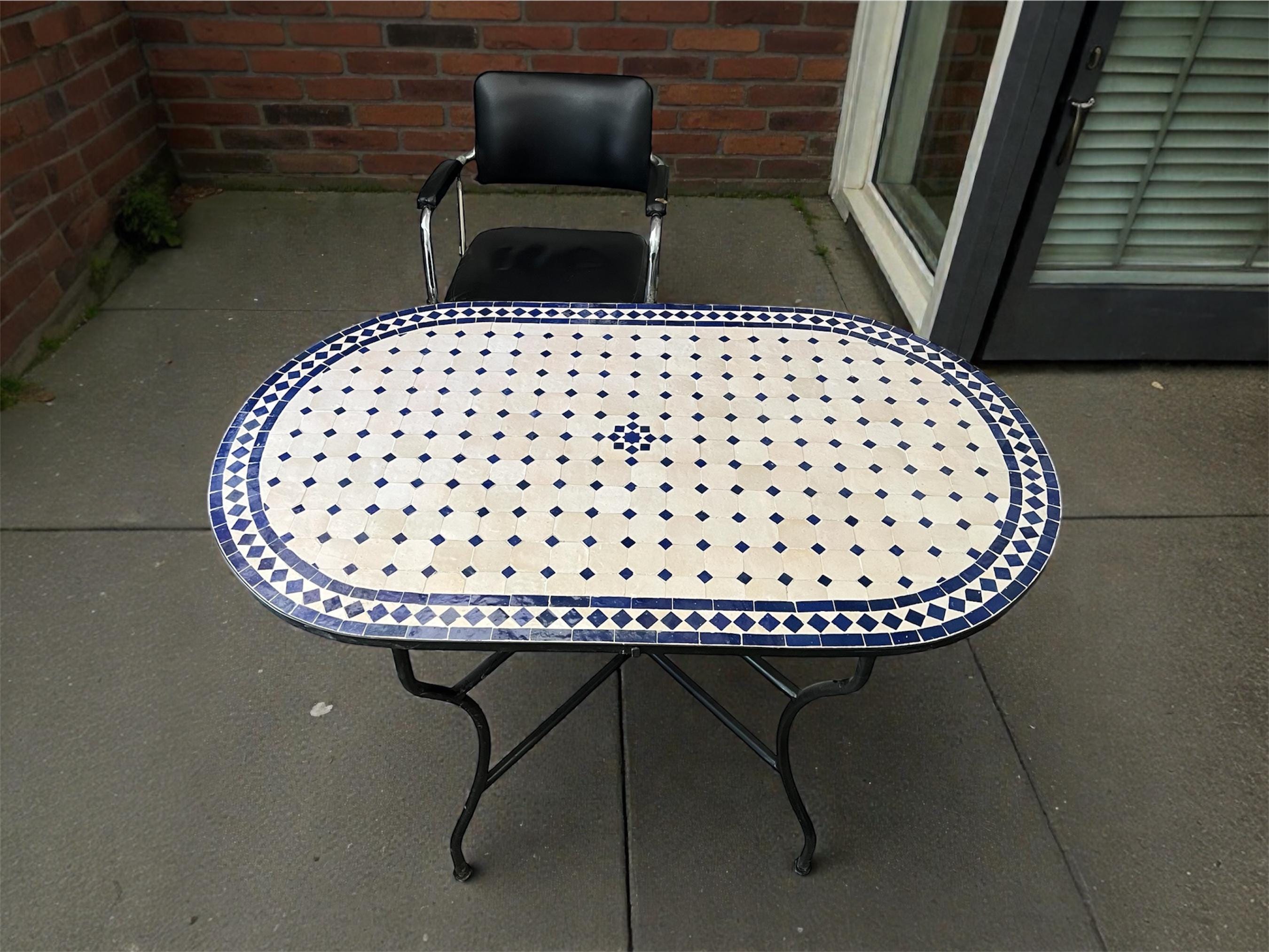 Custom Moroccan Mosaic Table – Handmade Zellige Bistro Table with Wrought Iron Legs | Outdoor Moroccan Artisan Furniture .