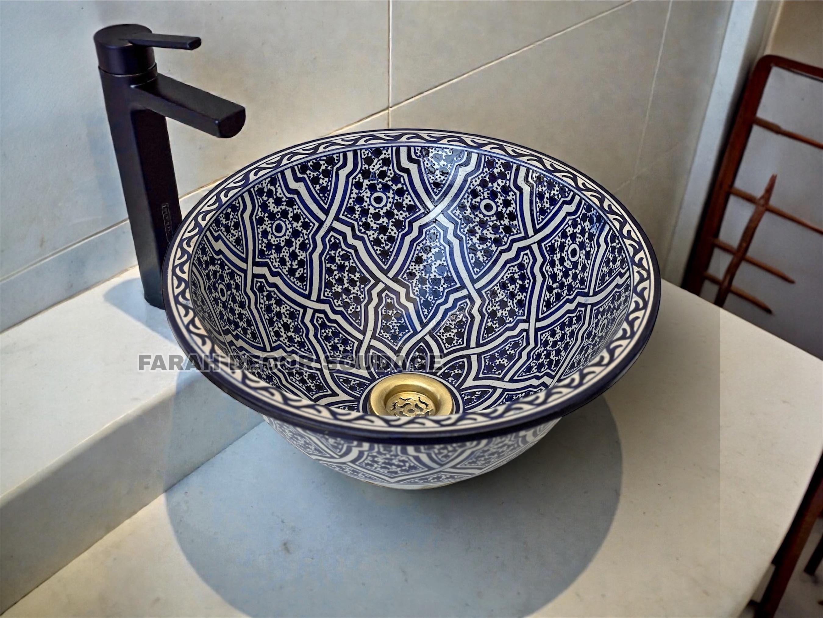 This handcrafted Moroccan ceramic basin is a perfect fusion of traditional artistry and modern functionality. Carefully made by experienced artisans, each piece reflects the rich heritage of Moroccan craftsmanship while offering a practical and elegant solution for everyday use.
