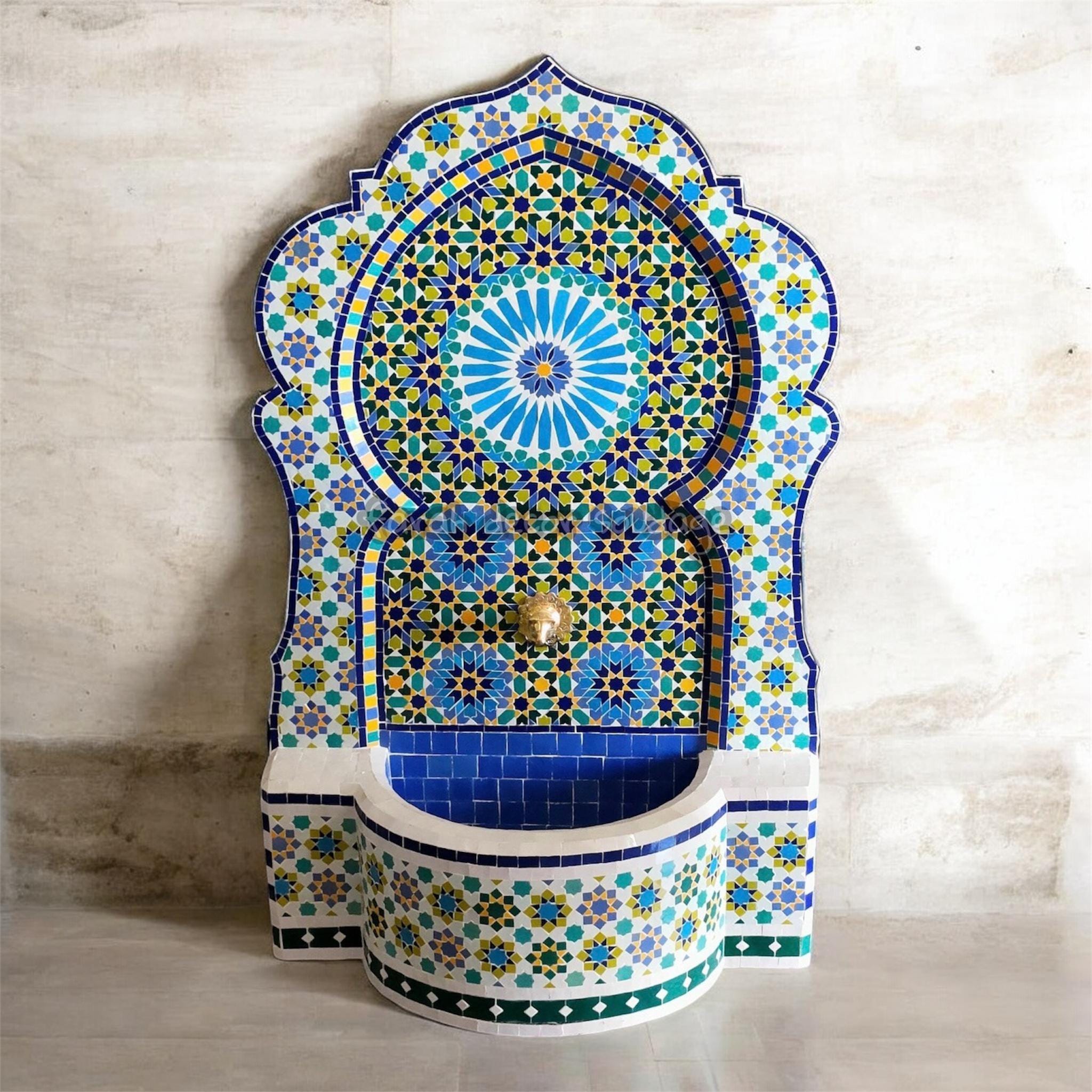 Garden Moroccan Mosaic Fountain, Moroccan Tile Fountain, Moroccan Mosaic Fountain, Wall Mosaic Fountain, Indoor Outdoor Garden Fountain