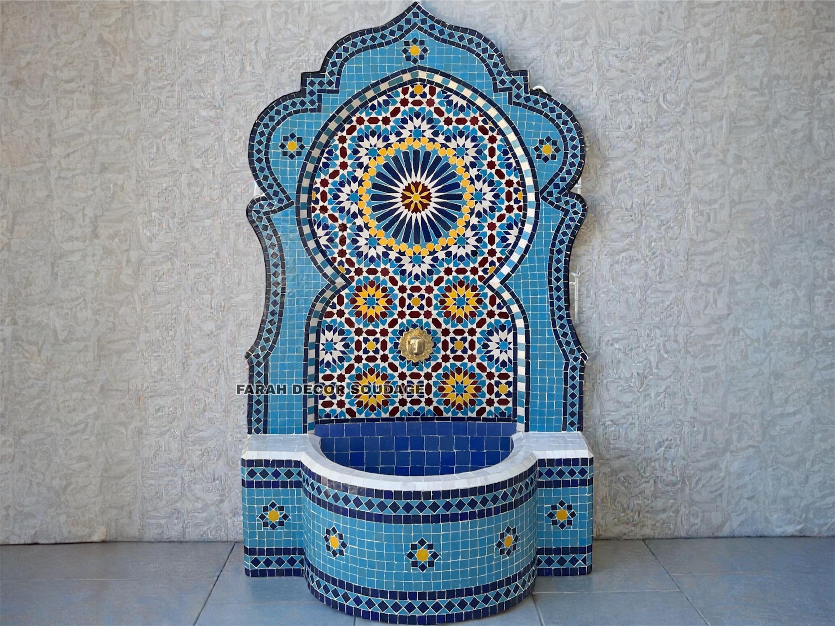 Garden Moroccan Mosaic Fountain, Moroccan Tile Fountain, Moroccan Mosaic Wall Fountain, Indoor Outdoor Garden Fountain