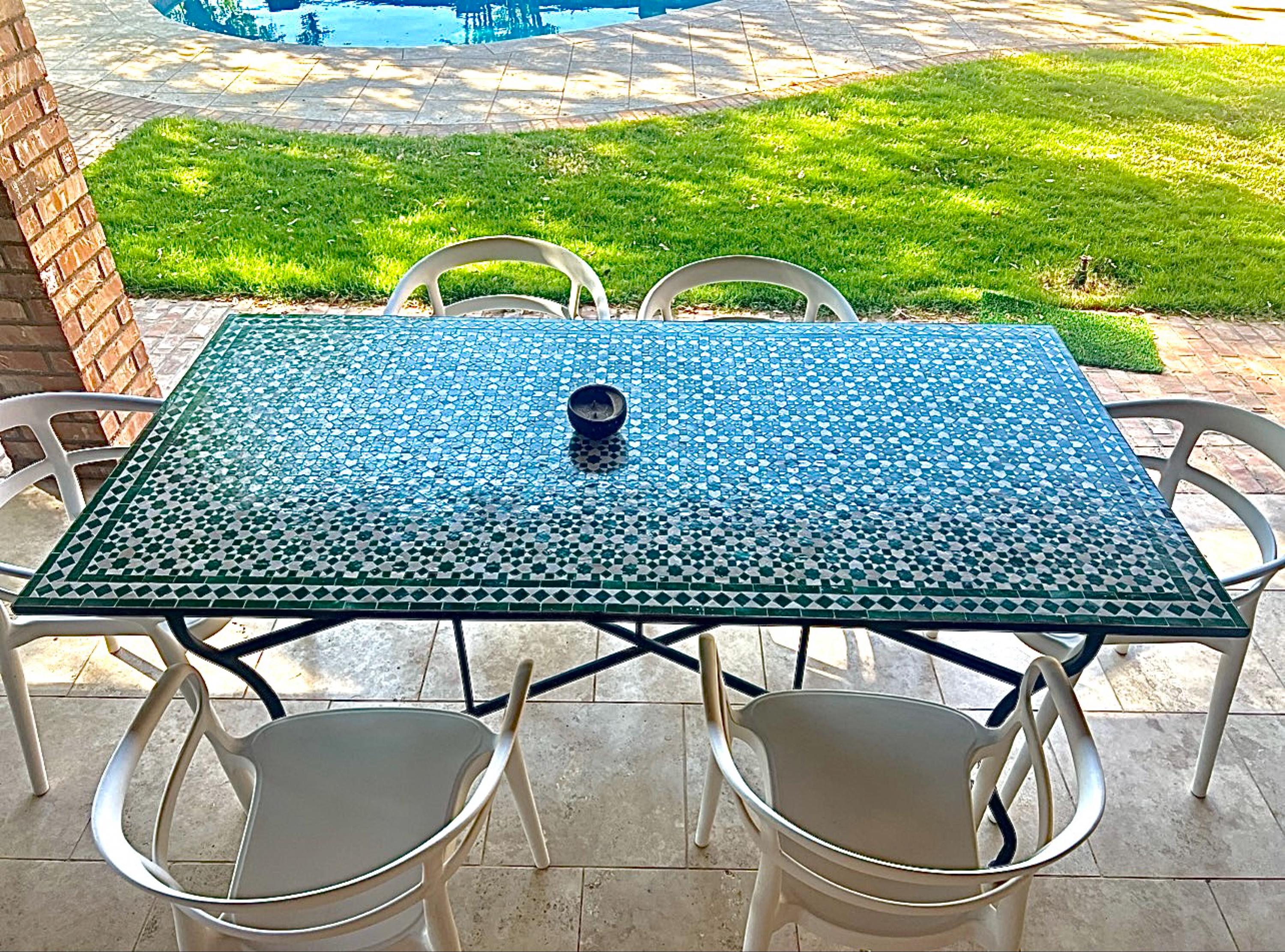 Dining Table Mosaic Top Rectangular , Handcrafted Rectangular Moroccan Outdoor/ Indoor Mosaic , Mosaic Table , Mosaic tiles .